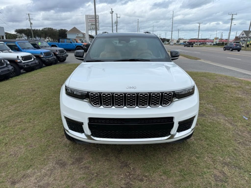 Equipped with Advanced Protech Group IV (Heads-Up Display, Interior Rear Facing Camera, Night Vision/Pedestrian-Animal Detection, Rearview Autodim Digital Display Mirror, and Windshield Wiper De-Icer), Luxury Tech Group V (2nd Row Manual Window Shades and Wireless Charging Pad), Quick Order Package 23U Summit Reserve (19 Speakers High Performance Audio, 950 Watt Amplifier, Active Noise Control System, Deluxe Headliner, Front Passenger Interactive Display, Palermo Leather Door Trim, Palermo Leather Seats, Summit, Summit Badge, Ventilated Rear Seats, and Wheels: 21" x 9.0" Machined Face/Painted Aluminum), Two Tone Paint Group, 10 Speakers, 3.45 Rear Axle Ratio, 3rd row seats: split-bench, 4-Wheel Disc Brakes, ABS brakes, Adaptive suspension, Air Conditioning, Alloy wheels, AM/FM radio: SiriusXM with 360L, Anti-whiplash front head restraints, Audio memory, Auto High-beam Headlights, Auto-dimming door mirrors, Auto-dimming Rear-View mirror, Auto-leveling suspension, Automatic temperature control, Brake assist, Bumpers: body-color, Compass, Delay-off headlights, Driver door bin, Driver vanity mirror, Dual front impact airbags, Dual front side impact airbags, Electronic Stability Control, Emergency communication system, Four wheel independent suspension, Front anti-roll bar, Front Bucket Seats, Front Center Armrest w/Storage, Front dual zone A/C, Front fog lights, Front License Plate Bracket, Front reading lights, Fully automatic headlights, Garage door transmitter, Genuine wood dashboard insert, Genuine wood door panel insert, Heated door mirrors, Heated front seats, Heated rear seats, Heated steering wheel, Illuminated entry, Knee airbag, Leather steering wheel, Low tire pressure warning, Memory seat, Model Year Tracking, Nappa Leather Seats, Navigation System, Normal Duty Suspension, Occupant sensing airbag, Outside temperature display, Overhead airbag, Overhead console, Panic alarm, Passenger door bin, Passenger vanity mirror, Power door mirrors, Power driver seat, Power Fold Seatbacks, Power Liftgate, Power moonroof, Power passenger seat, Power steering, Power windows, Radio data system, Radio: Uconnect 5 Nav w/10.1" Display, Rain sensing wipers, Rear air conditioning, Rear anti-roll bar, Rear dual zone A/C, Rear reading lights, Rear seat center armrest, Rear window defroster, Rear window wiper, Reclining 3rd row seat, Remote keyless entry, Security system, Speed control, Speed-Sensitive Wipers, Split folding rear seat, Spoiler, Steering wheel memory, Steering wheel mounted audio controls, Tachometer, Telescoping steering wheel, Tilt steering wheel, Traction control, Trip computer, Turn signal indicator mirrors, Variably intermittent wipers, Ventilated front seats, Voltmeter, and Wheels: 20" x 8.5" Fully Painted Aluminum Silver.