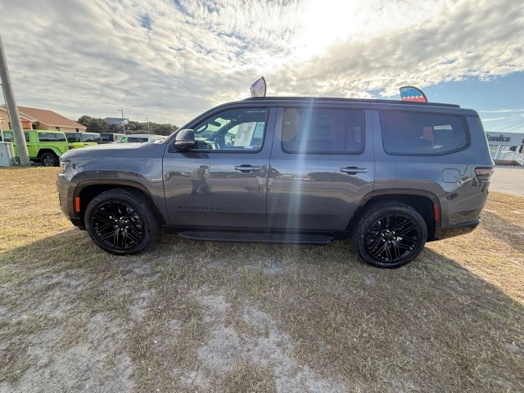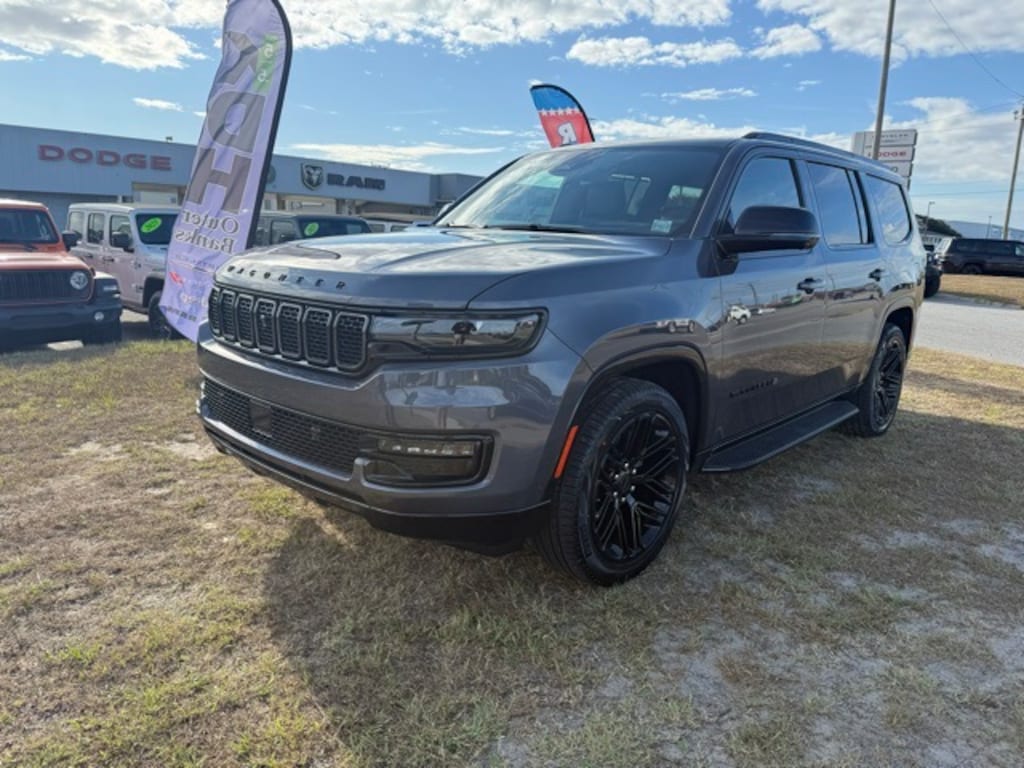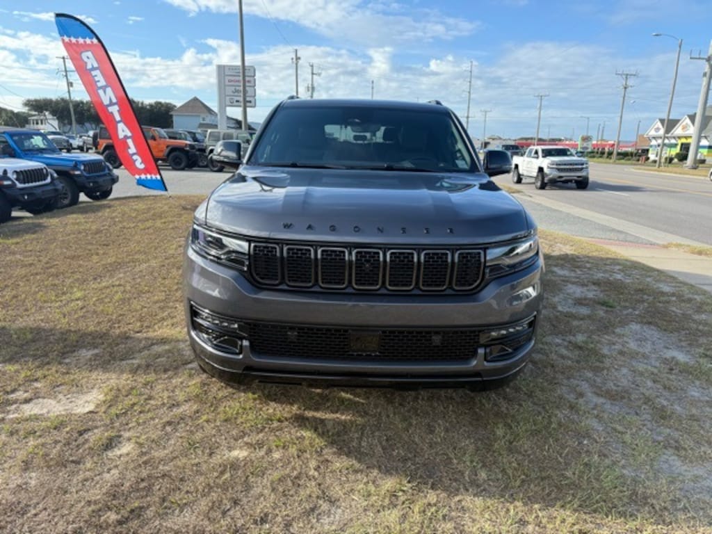 Equipped with Carbide Appearance Package, Convenience Group I (DISC) (2nd Row Manual Window Shades, Auto Adjust In Reverse Exterior Mirrors, Auto High Beam Headlamp Control, Auto Power Folding Exterior Mirrors, Auto Power-Folding Mirrors, Auto-Dimming Exterior Driver Mirror, Drowsy Driver Detection, Exterior Mirrors Approach Lamps, Exterior Mirrors w/Memory, Exterior Mirrors w/Supplemental Signals, Heads-Up Display, Heated Exterior Mirrors, Intersection Collision Assist System, P&P Park & Unpark Assist w/Stop System, Quadra-Lift Air Suspension, Semi Active Damping, Side Distance Warning, Surround View Camera System, and Traffic Sign Recognition), Premium Group I (3 Panel Sunroof, Adjustable Roof Rail Crossbars, Cargo Cover, and Reversible Carpet/Vinyl Cargo Mat), Quick Order Package 25F Carbide (Black Exterior Accents and Wheels: 20" x 9" Gloss Black Painted Aluminum), 10 Speakers, 118 MPH Maximum Speed Calibration, 3.55 Rear Axle Ratio, 3rd row seats: bench, 4-Wheel Disc Brakes, ABS brakes, Air Conditioning, Alloy wheels, AM/FM radio: SiriusXM with 360L, Anti-whiplash front head restraints, Apple CarPlay/Android Auto, Audio memory, Auto-dimming door mirrors, Auto-dimming Rear-View mirror, Auto-leveling suspension, Automatic temperature control, Brake assist, Bumpers: body-color, Compass, Delay-off headlights, Driver door bin, Driver vanity mirror, Driver's Seat Mounted Armrest, Dual front impact airbags, Dual front side impact airbags, Electronic Stability Control, Emergency communication system: Jeep Connect, Four wheel independent suspension, Front anti-roll bar, Front Bucket Seats, Front Center Armrest w/Storage, Front dual zone A/C, Front fog lights, Front License Plate Bracket, Front reading lights, Fully automatic headlights, Garage door transmitter, Genuine wood console insert, Genuine wood dashboard insert, Genuine wood door panel insert, Heated door mirrors, Heated front seats, Heated rear seats, Heated steering wheel, Illuminated entry, Knee airbag, Leather Trimmed Bucket Seats, Low tire pressure warning, Memory seat, Navigation System, Normal Duty Suspension, Occupant sensing airbag, Outside temperature display, Overhead airbag, Overhead console, Panic alarm, ParkView Rear Back-Up Camera, Passenger door bin, Passenger seat mounted armrest, Passenger vanity mirror, Power adjustable front head restraints, Power door mirrors, Power driver seat, Power Liftgate, Power passenger seat, Power steering, Power windows, Radio data system, Radio: Uconnect 5 Nav w/10.1" Display, Rain sensing wipers, Rear air conditioning, Rear anti-roll bar, Rear dual zone A/C, Rear reading lights, Rear seat center armrest, Rear window defroster, Rear window wiper, Reclining 3rd row seat, Remote keyless entry, Security system, Speed control, Speed-sensing steering, Speed-Sensitive Wipers, Split folding rear seat, Steering wheel memory, Steering wheel mounted audio controls, Tachometer, Telescoping steering wheel, Tilt steering wheel, Traction control, Trip computer, Turn signal indicator mirrors, Variably intermittent wipers, Ventilated front seats, Voltmeter, Wheels: 20" x 9.0" Premium 2 Aluminum, and Wheels: 22" x 9.0" Painted Gloss Black.