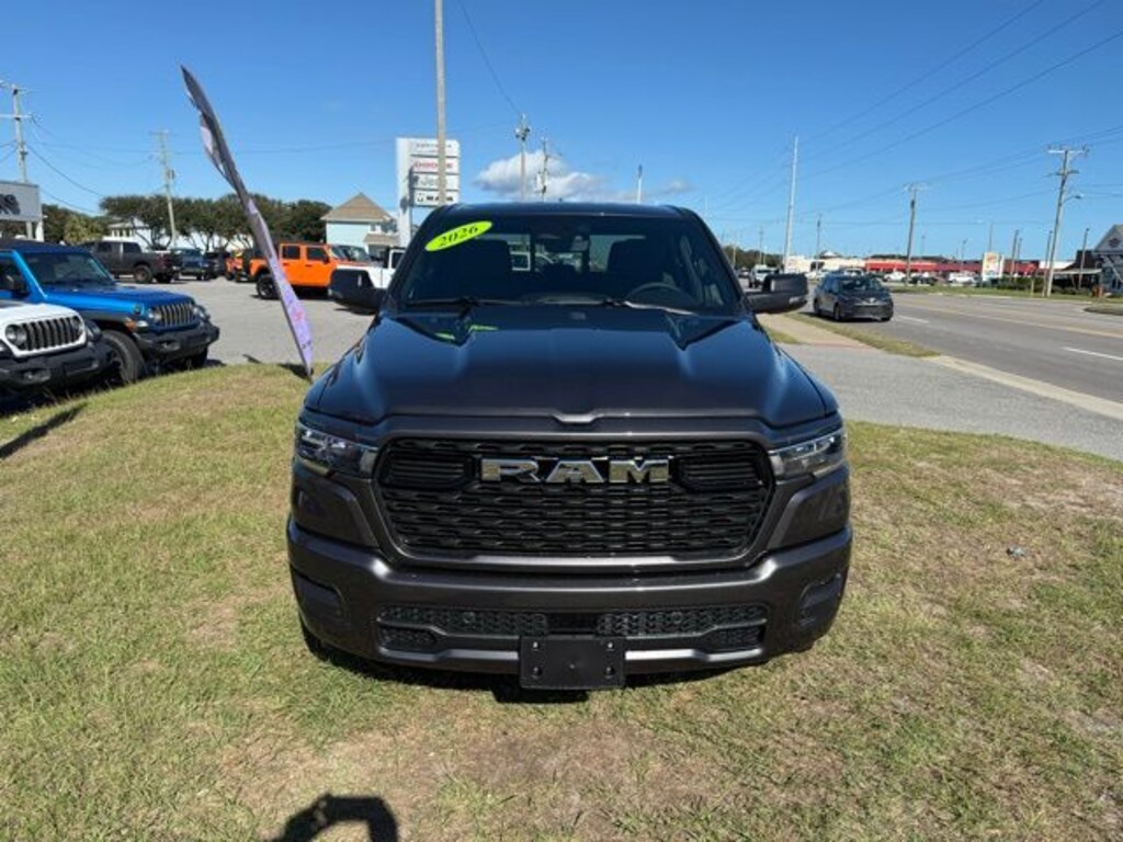 Equipped with Bed Utility Group (Exterior 115V AC Outlet, MOPAR 4 Adjustable Cargo Tie-Down Hooks, and Pick-Up Box Lighting), Big Horn Level 1 Equipment Group (115V Auxiliary Power Outlet, 3 Rear Seat Head Restraints, 4 Way Front Headrests, 400W Inverter, Auto Power-Folding Mirrors, Auto-Dimming Exterior Driver Mirror, Auto-Dimming Rear-View Mirror, Black Exterior Mirrors, Black Premium Power Mirrors, Body Color Fender Flares, Bucket Seats, Center Console Parts Module, Convex Wide-Angle Exterior Mirror Insert, Deluxe Cloth Bucket Seats, Exterior Mirrors Courtesy Lamps, Front Seat Back Map Pockets, Full Length Floor Console, Glove Box Lamp, Heated Front Seats, Heated Steering Wheel, Leather Wrapped Steering Wheel, Manual Adjust 4-Way Front Passenger Seat, Power 2-Way Driver Lumbar Adjust, Power Adjust 8-Way Driver Seat, Power Adjustable Pedals, Rear 60/40 Folding Seat, Rear Center Armrest, Rear Power Sliding Window, Rear Window Defroster, SiriusXM Radio Service, SiriusXM Satellite Radio, Steering Wheel Mounted Audio Controls, and Universal Garage Door Opener), Quick Order Package 27Z Big Horn, Sport Appearance Package (Black Interior Accents, Body Color Door Handles, Body Color Front Bumper, Body Color Tailgate Handle, Grille Surround 1 Body Color Texture 1 Black, and RAM Grille Badge - Chrome), 33 Gallon Fuel Tank, 4-Wheel Disc Brakes, 48V Belt Starter Generator, 4G LTE Wi-Fi Hot Spot, 6 Speakers, ABS brakes, Air Conditioning, Alloy wheels, AM/FM radio, Apple CarPlay, Apple CarPlay/Android Auto, Auto High-beam Headlights, Brake assist, Bumpers: chrome, Cloth Bucket Seats, Compass, Connectivity - US/Canada, Delay-off headlights, Driver door bin, Dual front impact airbags, Dual front side impact airbags, Electronic Stability Control, Front anti-roll bar, Front Bucket Seats, Front Center Armrest w/Storage, Front fog lights, Front License Plate Bracket, Front reading lights, Front wheel independent suspension, Fully automatic headlights, Google Android Auto, GPS Antenna Input, Heated door mirrors, Illuminated entry, Integrated Center Stack Radio, Low tire pressure warning, Manual Adjust 4-Way Driver Seat, Manual Folding Exterior Mirrors, Manufacturer's Statement of Origin, Occupant sensing airbag, Outside temperature display, Overhead airbag, Overhead console, Panic alarm, ParkView Rear Back-Up Camera, Passenger door bin, Passenger vanity mirror, Power door mirrors, Power steering, Power windows, Radio data system, Rear anti-roll bar, Rear step bumper, Rear Wheelhouse Liners, Remote keyless entry, Speed control, Supplier Part Tracking (J-1), Tachometer, Telescoping steering wheel, Tilt steering wheel, Traction control, Trailer Brake Control, Trip computer, USB Host Flip, Variably intermittent wipers, Voltmeter, and Wheels: 18" x 8" Cast-Aluminum Painted. Price includes: $3500 - 2026 National Retail Bonus Cash . Exp. 03/31/2026