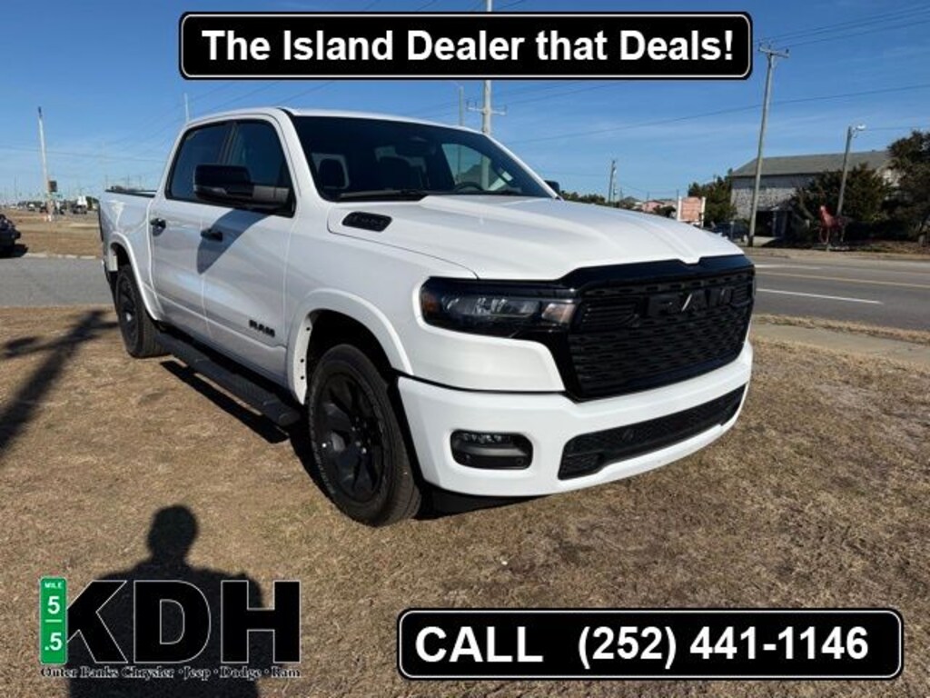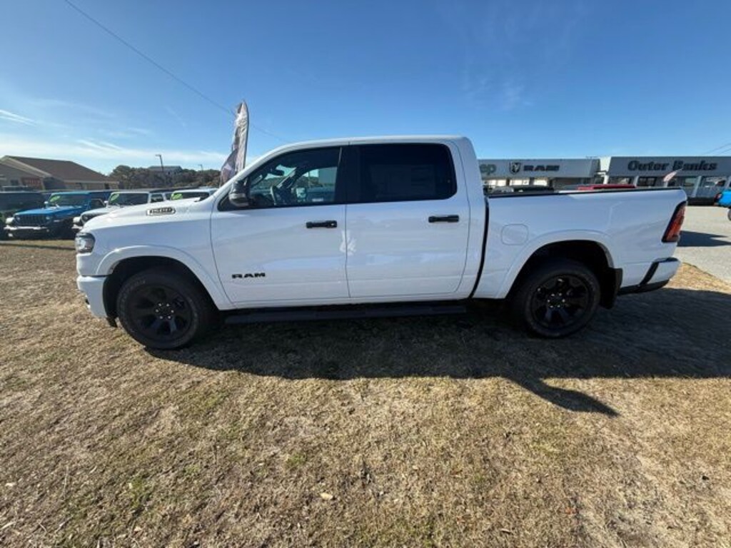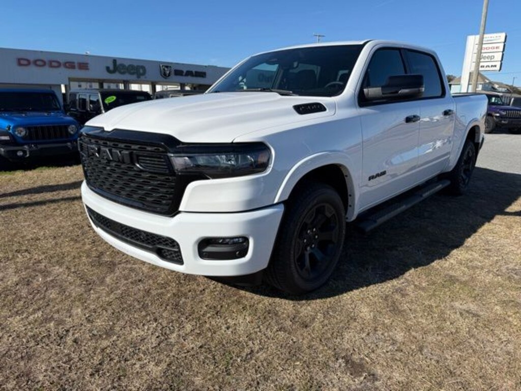 Equipped with Big Horn Level 2 Equipment Group (115V Auxiliary Power Outlet, 115V Auxiliary Rear Power Outlet, 12" Touchscreen Display, 2nd Row in Floor Storage Bins, 3 Rear Seat Head Restraints, 4 Way Front Headrests, 400W Inverter, 4G LTE Wi-Fi Hot Spot, 9 Amplified Speakers with Subwoofer, Air Conditioning ATC with Dual Zone Control, Apple CarPlay, Auto Power-Folding Mirrors, Auto-Dimming Exterior Driver Mirror, Auto-Dimming Rear-View Mirror, Black Exterior Mirrors, Black Premium Power Mirrors, Body Color Fender Flares, Bucket Seats, Center Console Parts Module, Cluster 7.0" TFT Color Display, Configurable Drive Mode, Connected Travel and Traffic Services, Connectivity - US/Canada, Convex Wide-Angle Exterior Mirror Insert, Deluxe Cloth Bucket Seats, Disassociated Touchscreen Display, Exterior Mirrors Courtesy Lamps, Exterior Mirrors with Heating Element, Exterior Mirrors with Supplemental Signals, Front Seat Back Map Pockets, Full Length Floor Console, Global Telematics Box Module, Glove Box Lamp, Google Android Auto, GPS Antenna Input, GPS Navigation, HD Radio, Heated Front Seats, Heated Steering Wheel, Integrated Center Stack Radio, Integrated Voice Command with Bluetooth, Leather Wrapped Steering Wheel, LED Dome Lamp with on/Off Switch, LED Footwell Lighting, Manual Adjust 4-Way Front Passenger Seat, Media Hub with 2 Charge Only USBs, Overhead LED Lamps, Power 2-Way Driver Lumbar Adjust, Power Adjust 8-Way Driver Seat, Power Adjustable Pedals, Premium Overhead Console, Radio: Uconnect 5 Navigation with 12.0" Display, Rear 60/40 Folding Seat, Rear Center Armrest, Rear Power Sliding Window, Rear Window Defroster, Remote Tailgate Release, Security Alarm, SiriusXM Radio Service, SiriusXM with 360L, Steering Wheel Mounted Audio Controls, Sun Visors with Illuminated Vanity Mirrors, Universal Garage Door Opener, and USB Host Flip), Night Edition (Accent Color Door Handles, Accent Color Premium Power Mirrors, Accent Color Tailgate Handle, Anti-Spin Differential Rear Axle, Black Exterior Truck Badging, Black Headlamp Bezels, Black Interior Accents, Black Painted Exterior Mirrors Caps, Black Tail Lamp Bezels, Body Color Front Bumper, Body Color Rear Bumper with Step Pads, Dual Exhaust with Black Tips, Grille Black Surround Black Mesh, RAM Grille Badge - Black, and Wheels: 20" x 9.0" Aluminum Painted Clad), Quick Order Package 21Z Big Horn, 33 Gallon Fuel Tank, 4-Wheel Disc Brakes, 48V Belt Starter Generator, 6 Speakers, ABS brakes, Air Conditioning, Alloy wheels, AM/FM radio, Apple CarPlay/Android Auto, Auto High-beam Headlights, Brake assist, Bumpers: chrome, Cloth Bucket Seats, Compass, Delay-off headlights, Driver door bin, Dual front impact airbags, Dual front side impact airbags, Electronic Stability Control, Front anti-roll bar, Front Bucket Seats, Front Center Armrest w/Storage, Front fog lights, Front License Plate Bracket, Front reading lights, Front wheel independent suspension, Fully automatic headlights, Heated door mirrors, Illuminated entry, Low tire pressure warning, Manual Adjust 4-Way Driver Seat, Manual Folding Exterior Mirrors, MOPAR Front and Rear Rubber Floor Mats, Occupant sensing airbag, Outside temperature display, Overhead airbag, Overhead console, Panic alarm, ParkView Rear Back-Up Camera, Passenger door bin, Passenger vanity mirror, Power door mirrors, Power steering, Power windows, Radio data system, Radio: Uconnect 5 W with 8.4" Display, RAM Grille Badge - Chrome, Rear anti-roll bar, Rear step bumper, Rear Wheelhouse Liners, Remote keyless entry, Speed control, Supplier Part Tracking (J-1), Tachometer, Telescoping steering wheel, Tilt steering wheel, Traction control, Trailer Brake Control, Trip computer, Variably intermittent wipers, and Voltmeter. Price includes: $3500 - 2026 National Retail Bonus Cash . Exp. 03/31/2026