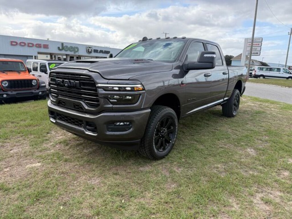 Equipped with Laramie Level 1 Plus Equipment Group (#1 Seat Foam Cushion, 115V Auxiliary Rear Power Outlet, 2 Way Rear Headrest Seat, 2nd Row in Floor Storage Bins, 4 Way Front Headrests, Active Lane Management System, Adaptive Steering System, Anti-Spin Differential Rear Axle, Auto Adjust in Reverse Exterior Mirrors, Auto Dim Exterior Mirror, Auto High Beam Headlamp Control, Auto Power-Folding Mirrors, Auto-Dimming Exterior Passenger Mirror, Bucket Seats, Center Stop Lamp with Cargo View Camera, Chrome Exterior Mirrors, Drowsy Driver Detection, Dual Wireless Charging Pad, Exterior Mirrors Courtesy Lamps, Exterior Mirrors with Heating Element, Exterior Mirrors with Memory, Exterior Mirrors with Supplemental Signals, Foam Bottle Insert (door Trim Panel), Folding Flat Load Floor Storage, Forward and Reverse Utility Lights, Front Seat Back Map Pockets, Full Length Upgraded Floor Console, Heated Front Seats, Heated Steering Wheel, High Back Seats, Leather Trimmed Bucket Seats, LED Bed Lighting, Mirror Running Lights, MOPAR Deployable Bed Step, MOPAR Spray in Bedliner, Power 2-Way Driver Lumbar Adjust, Power 2-Way Passenger Lumbar Adjust, Power Adjust 8-Way Driver Seat, Power Adjust 8-Way Front Passenger Seat, Power Adjust Mirrors, Power Adjustable Pedals with Memory, Power Heated Fold Telescopic Mirrors with Memory, Power Telescoping Mirrors, Power-Adjustable Convex Aux Mirrors, Radio/Driver Seat/Mirrors/Pedals Memory, Rain Sensitive Windshield Wipers, Rear 60/40 Folding Seat, Remote Tailgate Release, Traffic Sign Recognition, and Ventilated Front Seats), Night Edition (Black Exterior Mirrors, Black Exterior Truck Badging, Black Wheel Center Hub, Body Color Grille-Surround, Gloss Black Grille Billets/Accents, Sport Performance Hood, and Wheels: 20" x 8.0" Black Painted Aluminum), Quick Order Package 24H Laramie, 10 Speakers, 4-Wheel Disc Brakes, 4G LTE Wi-Fi Hot Spot, 5th Wheel/Gooseneck Towing Prep Group, ABS brakes, Air Conditioning, Alexa Built-in, Alloy wheels, AM/FM radio: SiriusXM with 360L, Apple CarPlay, Apple CarPlay/Android Auto, Auto-dimming Rear-View mirror, Automatic temperature control, Brake assist, Bumpers: body-color, Clearance Lamps, Compass, Connected Travel and Traffic Services, Connectivity - US/Canada, Delay-off headlights, Disassociated Touchscreen Display, Driver door bin, Driver vanity mirror, Dual front impact airbags, Dual front side impact airbags, Electronic Stability Control, Emergency Vehicle Alert System (EVAS), For Details, Visit DriveUconnect.com, For More Info, Call 800-643-2112, Front anti-roll bar, Front Center Armrest w/Storage, Front dual zone A/C, Front fog lights, Front License Plate Bracket, Front reading lights, Fully automatic headlights, Garage door transmitter, Global Telematics Box Module, Google Android Auto, GPS Antenna Input, GPS Navigation, HD Radio, Heated door mirrors, Heated front seats, Heated steering wheel, Illuminated entry, Integrated Voice Command with Bluetooth, Leather Trim 40/20/40 Bench Seat, Low tire pressure warning, Manufacturer's Statement of Origin, MOPAR Front and Rear Rubber Floor Mats, MyFlexCare Service Diesel, Navigation System, Occupant sensing airbag, Off-Road Info Pages, Outside temperature display, Overhead airbag, Overhead console, Panic alarm, ParkView Rear Back-Up Camera, Passenger door bin, Passenger vanity mirror, Power door mirrors, Power driver seat, Power passenger seat, Power steering, Power windows, Radio data system, Radio: Uconnect 5 Navigation with 12.0" Display, Rear anti-roll bar, Rear reading lights, Rear seat center armrest, Rear step bumper, Rear window defroster, Remote keyless entry, Security system, Selectable Tire Fill Alert, SiriusXM Radio Service, SiriusXM with 360L, Speed control, Split folding rear seat, Steering wheel mounted audio Price includes: $1000 - 2026 National Bonus Cash . Exp. 03/3