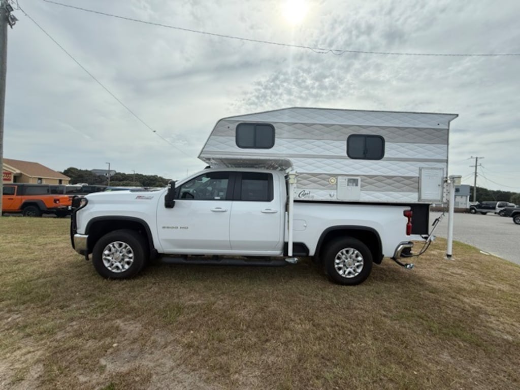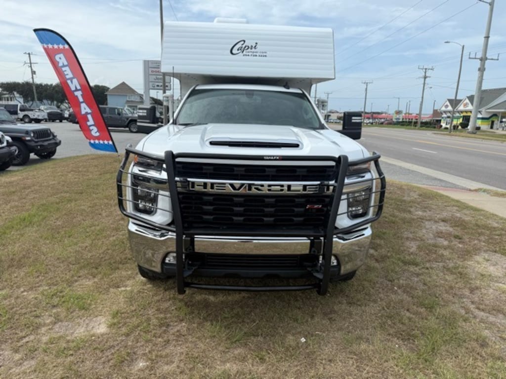 Recent Arrival! 6-Speed Automatic, 4WD, Black Cloth. 2022 Chevrolet Silverado 2500HD LT Summit White, with a Capri camper shell. 12V/110V refrigerator, sink and faucet with hot and cold water, cook top, microwave, roof mount A/C, propane heater, bunk bed, stand up shower, electric jacks, $33,225.94 MSRP. Ready for all your camping needs. Must see.....
