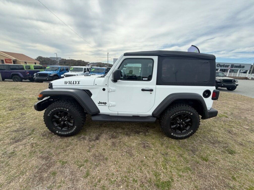 Equipped with LED Headlamp & Fog Lamp Group (Front LED Fog Lamps and LED Premium Reflector Headlamps), Quick Order Package 22W Willys (4-Wheel Drive Swing Gate Decal, 7.0" Touchscreen Display, 97 MPH Vehicle Max Speed Calibration, Air Conditioning, Anti-Spin Differential Rear Axle, Apple CarPlay, Automatic Headlamps, Black Grille, Black Trail Rated Badge, Bridgestone Brand Tires, Deep Tint Sunscreen Windows, Front 1-Touch Down Power Windows, Global Telematics Box Module (TBM), Google Android Auto, GPS Antenna Input, Integrated Center Stack Radio, Integrated Voice Command w/Bluetooth, Leather Wrapped Steering Wheel, Matte Black Jeep Badge, Mold In Color Bumper w/Gloss Black, MOPAR All-Weather Floor Mats, Power Heated Mirrors, R1234YF A/C Refrigerant, Radio: Uconnect 4 w/7" Display, Remote Keyless Entry, Security Alarm, SiriusXM Guardian-Included Trial (B), Speed Sensitive Power Locks, Sun Visors w/Illuminated Vanity Mirrors, USB Host Flip, Wheels: 17" x 7.5" Moab Black Aluminum, Willys, and Willys Hood Decal), Technology Group (Air Conditioning w/Auto Temperature Control, Air Filtering, Cluster 7.0" TFT Color Display, For More Info, Call 800-643-2112, Front Door Locks 2-Door Passive Entry, SiriusXM Radio Service, and SiriusXM Satellite Radio), Trailer Tow & HD Electrical Group (240 Amp Alternator, 7 & 4 Pin Wiring Harness, 700 Amp Maintenance Free Battery, Auxiliary Switches, and Class II Receiver Hitch), Certified Pre-Owned Gold Certified, 3.45 Overall Top Gear Ratio, 4-Wheel Disc Brakes, 8 Speakers, ABS brakes, AM/FM radio, Auxiliary Battery, Brake assist, Cloth Low-Back Bucket Seats, Compass, Delay-off headlights, Driver door bin, Driver vanity mirror, Dual front impact airbags, Dual front side impact airbags, Electronic Stability Control, Emergency communication system: SiriusXM Guardian, Engine Oil Cooler, Front anti-roll bar, Front Bucket Seats, Front Center Armrest w/Storage, Front fog lights, Front reading lights, Integrated roll-over protection, Low tire pressure warning, Non-Locking Fuel Cap w/o Discriminator, Normal Duty Suspension, Occupant sensing airbag, Outside temperature display, ParkView Rear Back-Up Camera, Passenger door bin, Passenger vanity mirror, Power steering, Radio data system, Radio: Uconnect 3 w/5" Display, Rear anti-roll bar, Rear reading lights, Speed control, Start-Stop Dual Battery System, Steering wheel mounted audio controls, Tachometer, Telescoping steering wheel, Tilt steering wheel, Traction control, Trip computer, Variably intermittent wipers, and Wheels: 17" x 7.5" Black Steel Styled.