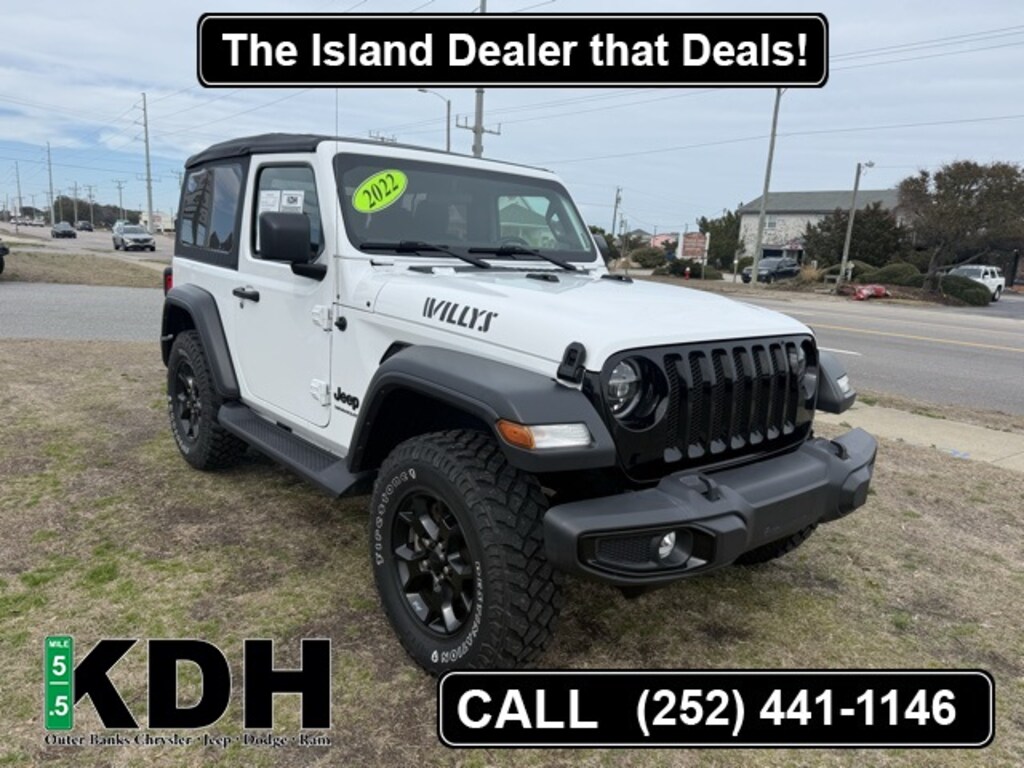 Certified. Bright White Clearcoat 2022 Jeep Wrangler Willys