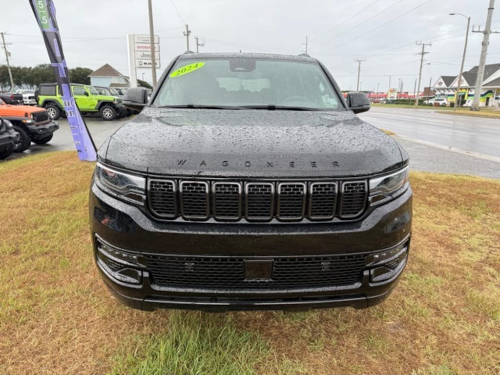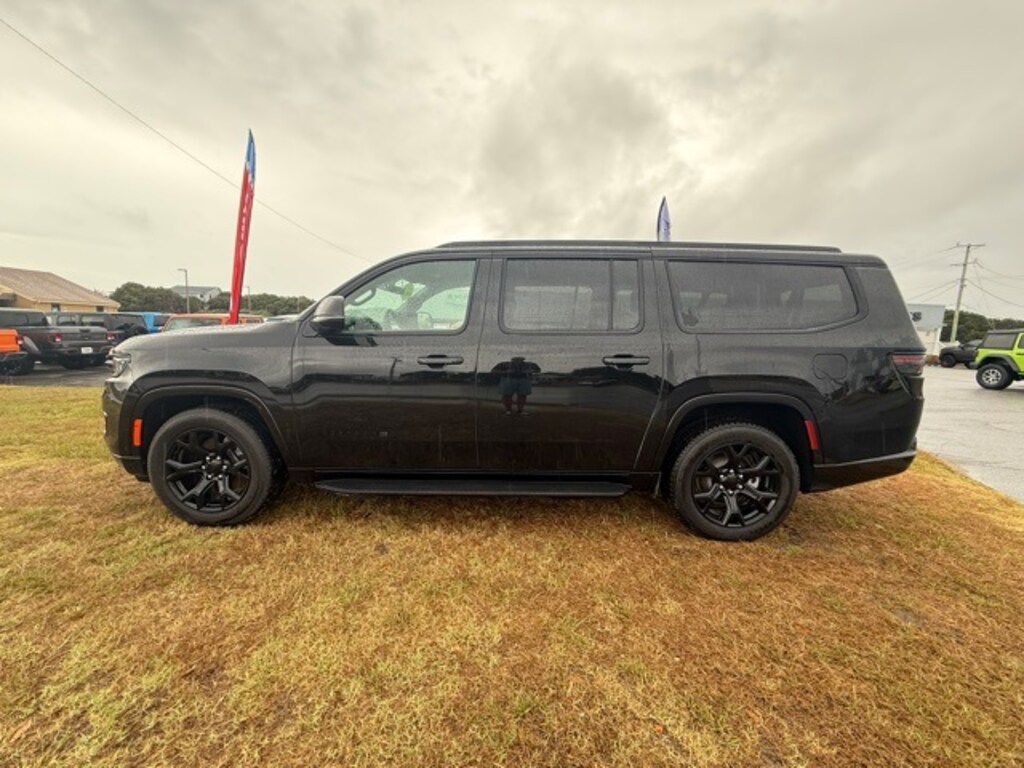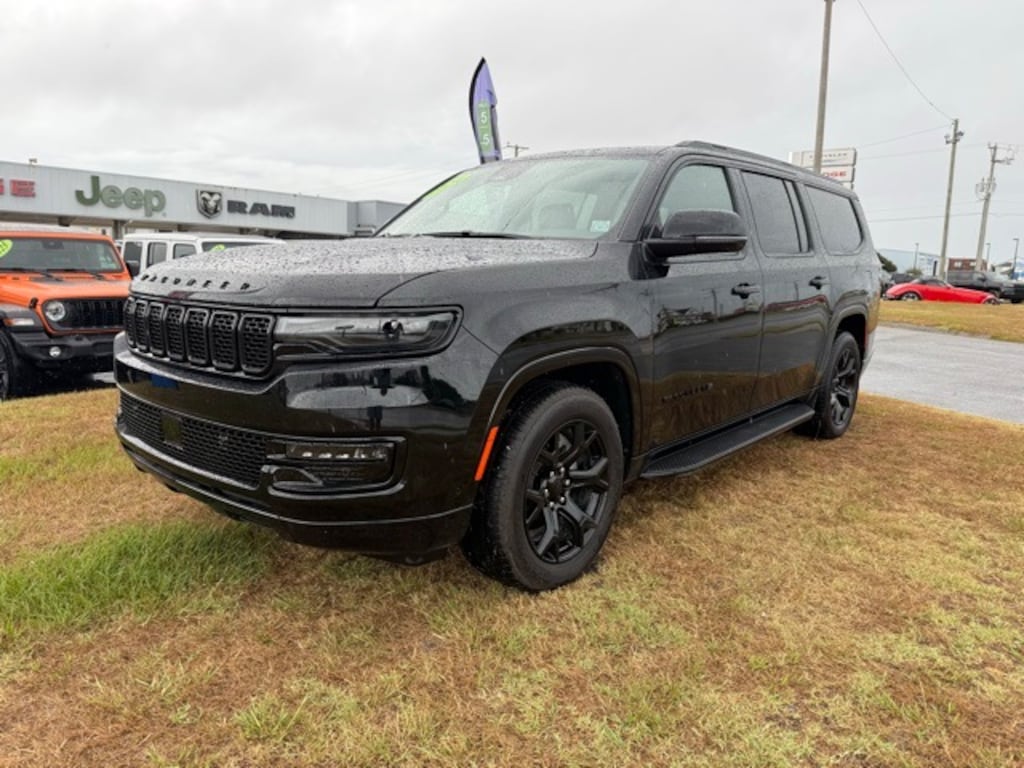 Equipped with Carbide Appearance Package, MOPAR Interior Protection Package (All-Season Floor Mats and Cargo Tray), Quick Order Package 25F Carbide (3 Panel Sunroof, Adjustable Roof Rail Crossbars, Black Interior Accents, Piano Black Exterior Accents, Reversible Carpet/Vinyl Cargo Mat, and Wheels: 20" x 9.0" Aluminum Painted Gloss Black), 10 Speakers, 3.55 Rear Axle Ratio, 3rd row seats: bench, 4-Wheel Disc Brakes, ABS brakes, Adjustable pedals, Air Conditioning, Alloy wheels, AM/FM radio: SiriusXM with 360L, Anti-whiplash front head restraints, Apple CarPlay/Android Auto, Audio memory, Auto-dimming door mirrors, Auto-dimming Rear-View mirror, Auto-leveling suspension, Automatic temperature control, Brake assist, Bumpers: body-color, Compass, Delay-off headlights, Driver door bin, Driver vanity mirror, Driver's Seat Mounted Armrest, Dual front impact airbags, Dual front side impact airbags, Electronic Stability Control, Emergency communication system: Wagoneer Connect, Exterior Parking Camera Rear, Four wheel independent suspension, Front anti-roll bar, Front Bucket Seats, Front Center Armrest w/Storage, Front dual zone A/C, Front fog lights, Front reading lights, Full Length Floor Console, Fully automatic headlights, Garage door transmitter, Genuine wood console insert, Genuine wood dashboard insert, Genuine wood door panel insert, Heated door mirrors, Heated front seats, Heated steering wheel, Illuminated entry, Knee airbag, Leather Trimmed Bucket Seats, Low tire pressure warning, Memory seat, Navigation System, Normal Duty Suspension, Occupant sensing airbag, Outside temperature display, Overhead airbag, Overhead console, Panic alarm, Passenger door bin, Passenger seat mounted armrest, Passenger vanity mirror, Pedal memory, Power adjustable front head restraints, Power door mirrors, Power driver seat, Power Liftgate, Power passenger seat, Power steering, Power windows, Radio data system, Radio: Uconnect 5 Nav w/10.1" Display, Rain sensing wipers, Rear air conditioning, Rear anti-roll bar, Rear reading lights, Rear seat center armrest, Rear window defroster, Rear window wiper, Reclining 3rd row seat, Remote keyless entry, Security system, Speed control, Speed-sensing steering, Speed-Sensitive Wipers, Split folding rear seat, Steering wheel memory, Steering wheel mounted audio controls, Tachometer, Telescoping steering wheel, Tilt steering wheel, Traction control, Trip computer, Turn signal indicator mirrors, Variably intermittent wipers, Ventilated front seats, Voltmeter, and Wheels: 20" x 9.0" Premium 2 Aluminum.